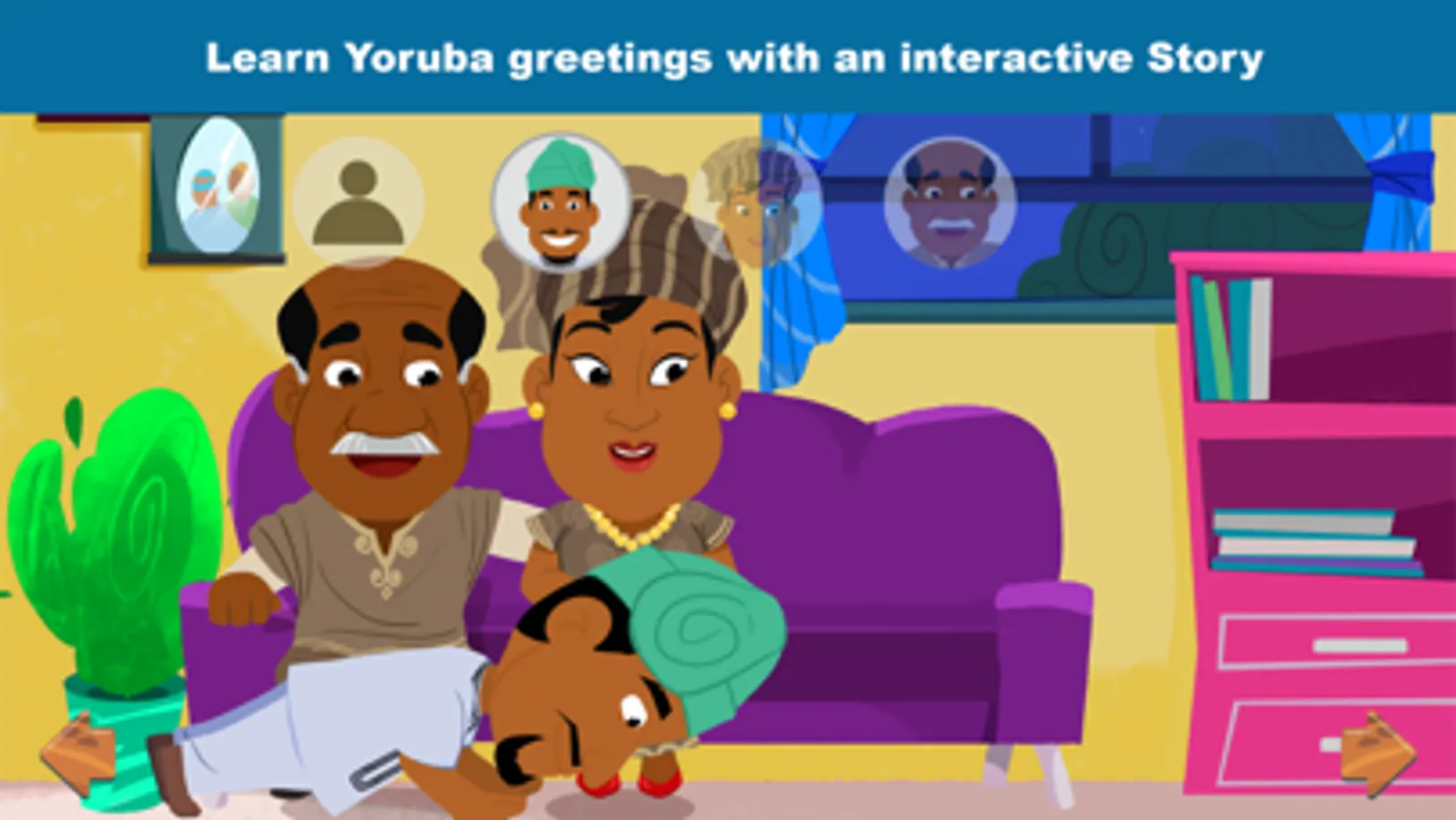 Greetings are some of the most important and interesting features of Yoruba culture. Yoruba101 Ikini uses a simple storyline, game and rhymes to teach children and adult learners Yoruba greetings. Teacher Ade continues from where he left off in the popular Yoruba language-learning app, Yoruba101.
