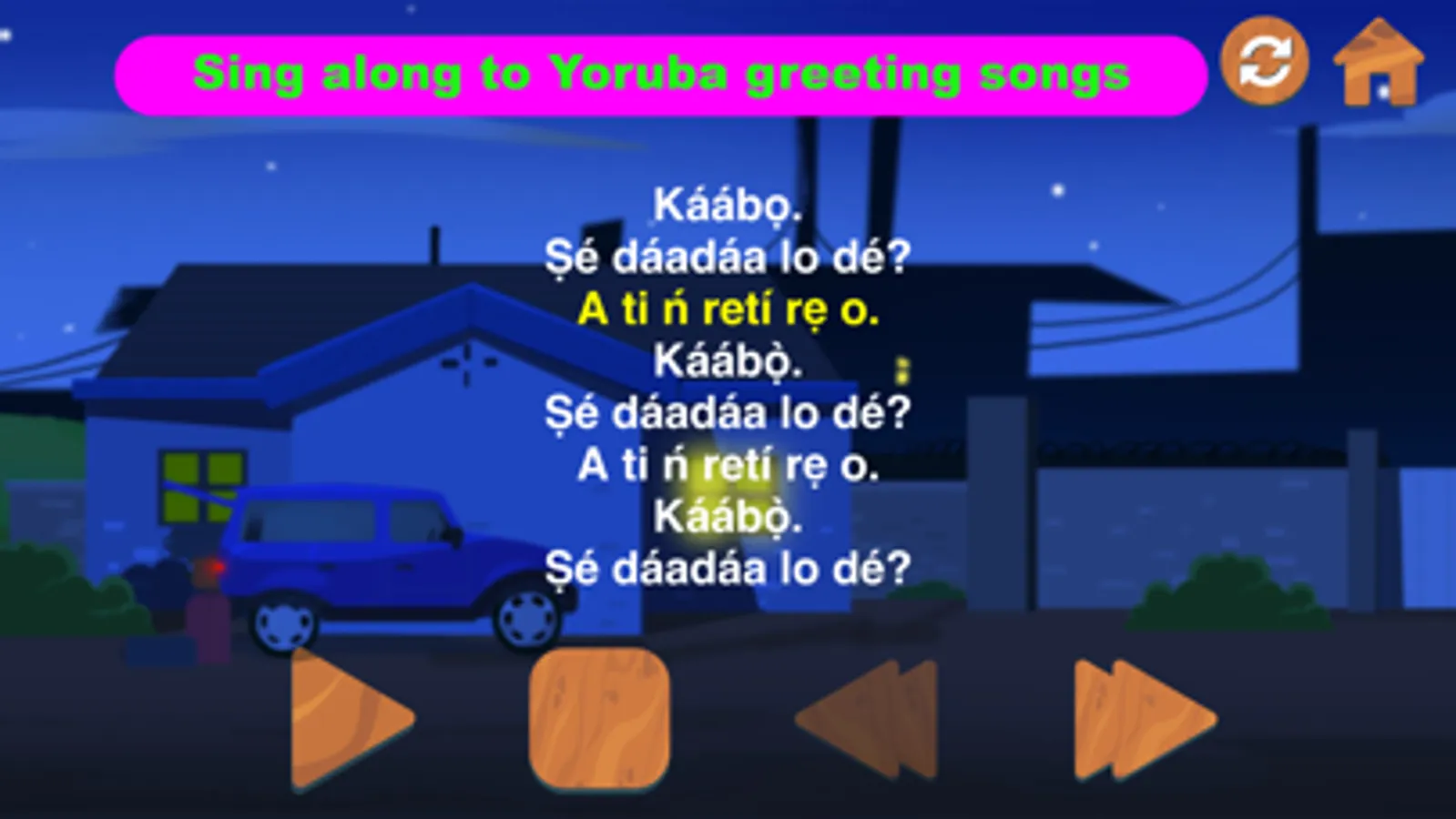 • Songs: Learn Yoruba greetings by singing along to beautiful songs.