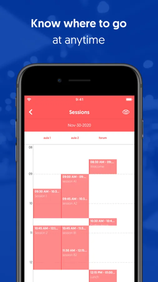 - Quickly and easily find important information such as the event location, hours, agenda and special activities.