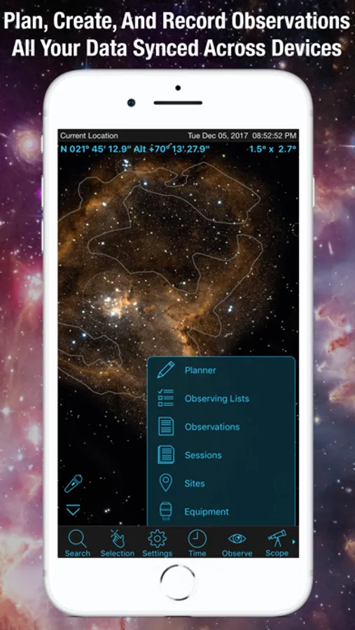 7) Plan It. Make the most of your time under the stars. Our updated planner is a powerful tool that lets you create a list of targets for your observing session with filters like object types, specific time ranges, constellation, catalog, and more. Plan it and get more done.