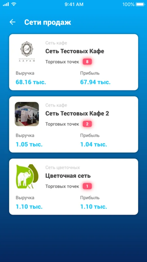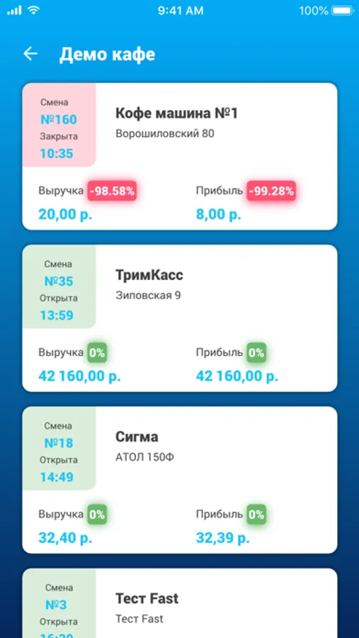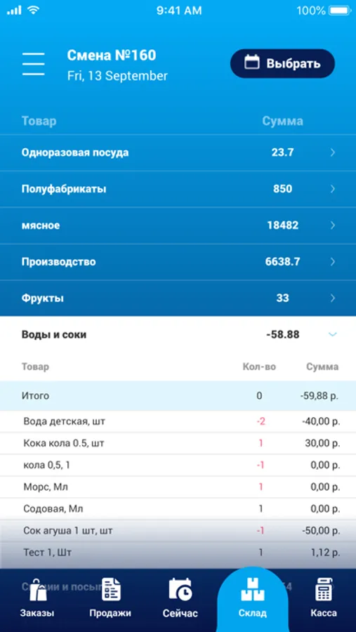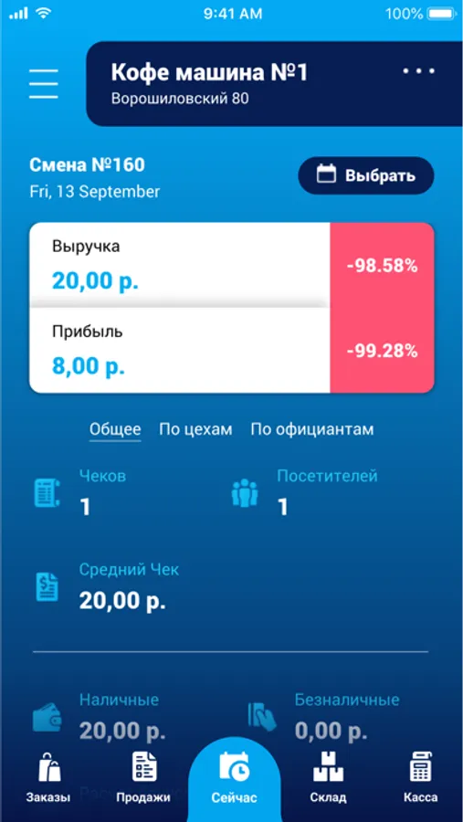 В приложении доступна информация о состоянии продаж, остатках на складе, количестве гостей и заказах на текущий момент.