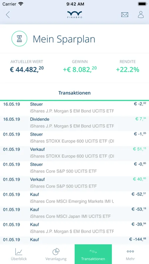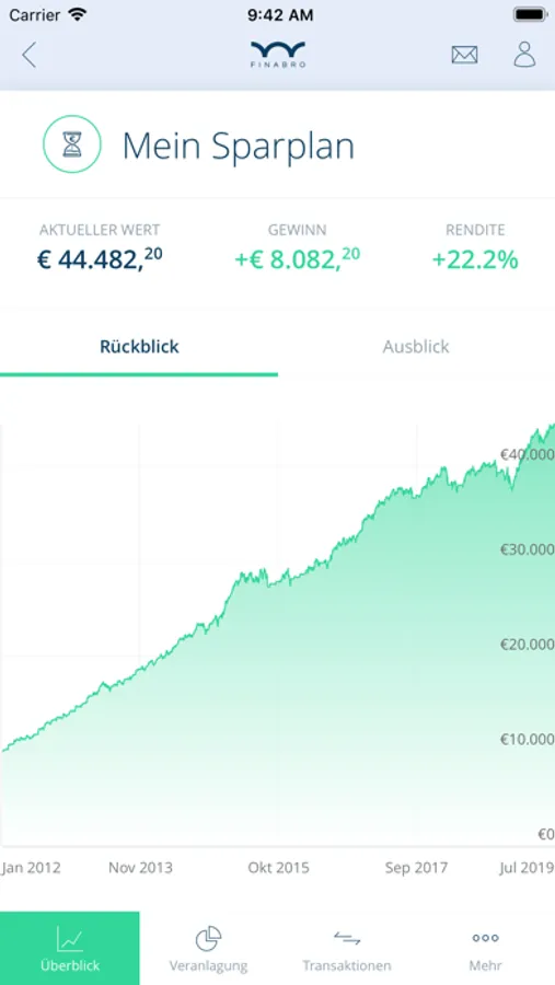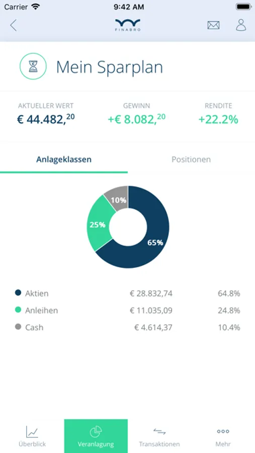 Mit der FINABRO App haben Sie überall, rund um die Uhr Zugriff auf Ihre FINABRO-Konten. Sie haben einen Überblick über die aktuelle Höhe Ihrer Rendite, die Zusammensetzung Ihres Portfolios und vieles mehr. Ein schneller Zugriff wird durch einfache Bedienung mithilfe des Fingerprint-Sensors gewährleistet.