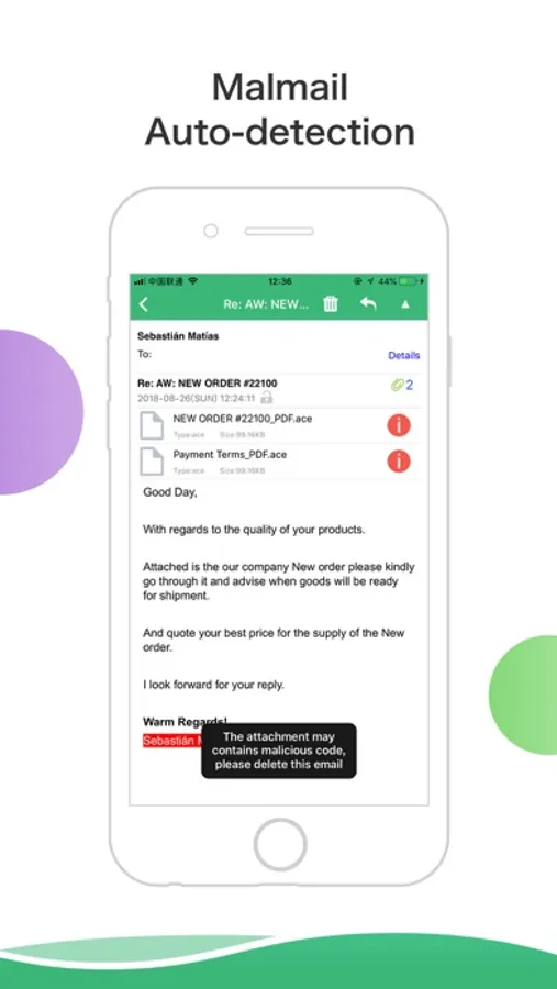 MeSign app performs email attachments and hyperlinks security scanning and Spam identification of all incoming emails.
