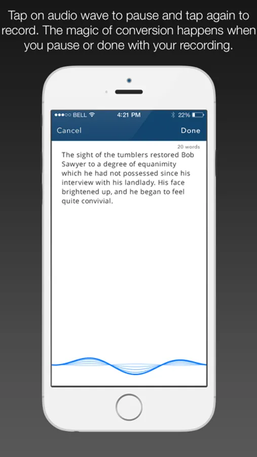 - Tap on audio wave to pause/record in the note screen. The magic of conversion happens when you pause or close the note.