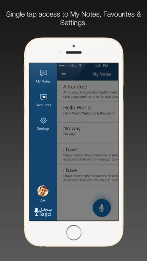 A personal assistant app which takes the voice notes from users and converts that into textual format. It enables the users to store the notes, copy and paste text into different apps or share with friends. The app also stores copy of recorded audio for future reference. The app supports English and Arabic language.