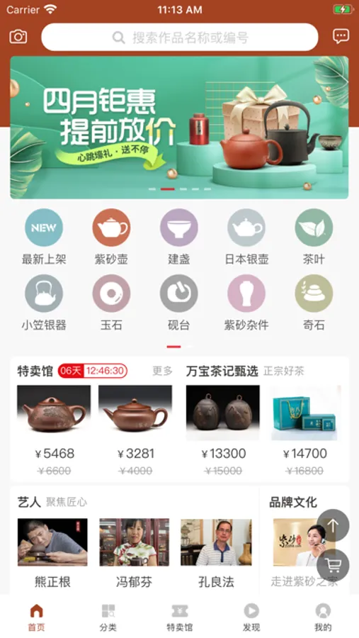 紫砂之家平台全新版本上线,汇集天下名家,藏品约有30万余件,签约1000余位紫砂大师,100余位品茗杯大师,20余位香炉大师,与90%日本堂口达成合作,获得38家堂口产品授权,为我们的100余万会员客户提供更多的优质的收藏、赠送礼品,用来改善茶文化,提升喝茶、品茶、茶道、香道、茶叶、陶艺、茶具、陶瓷、茶语、香炉、直播、艺术品、工艺品、陶艺大师、购物的交流。