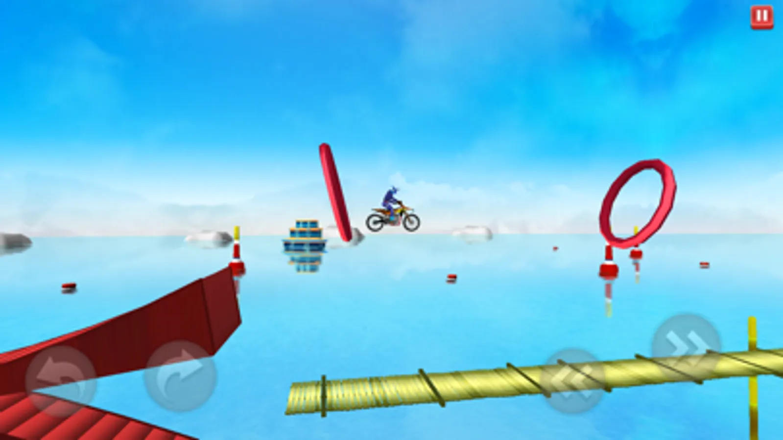 In "Bike Rider - Water Stunts", ride multiple stunt MOTORBIKE, increase your speed and score high in this real racing challenge! Negotiate hundreds of obstacles including ramps, jumbo tires, rocks, planks and more in this exciting motorcycle stunt game. Ride as fast as you can to become the best bike racer in the world! The faster you drive the higher you score. Each level of the bike racing is more challenging and more exciting than the previous one! So start your MOTORBIKE as fast as possible and reach the destination to win. Be the best riders.