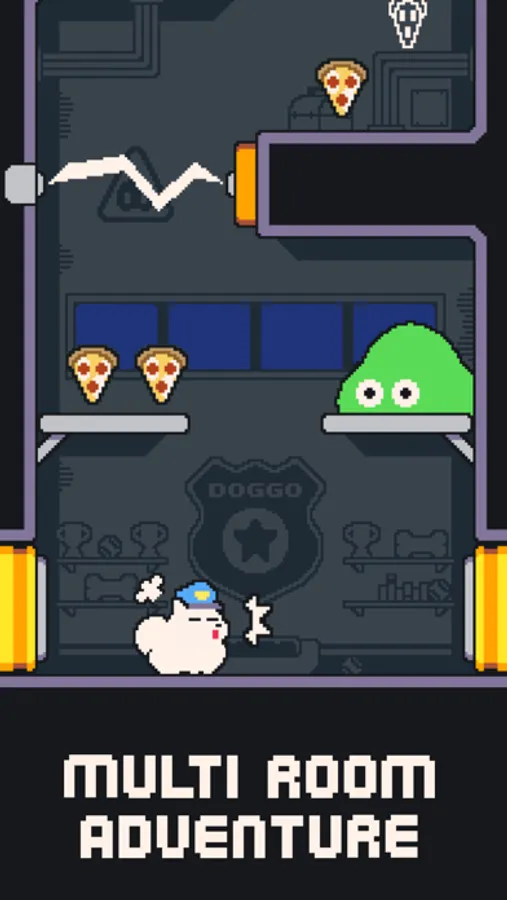 Collect all the pizza you can, but beware the watchful eye of the planet's patrol officer!