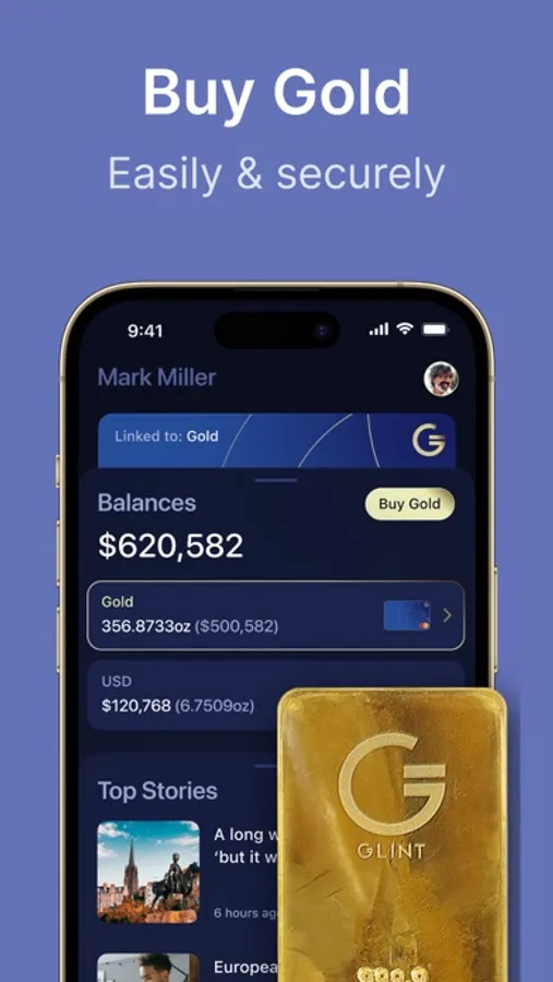 The Glint app is a simple way to buy physical, allocated gold bullion. You can purchase any amount, any time, at spot market gold prices with our low fee at 0.5%.