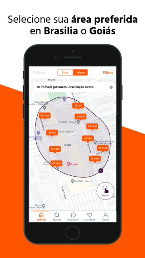 • Navegar pelo mapa para encontrar imóveis na área de seu interesse;