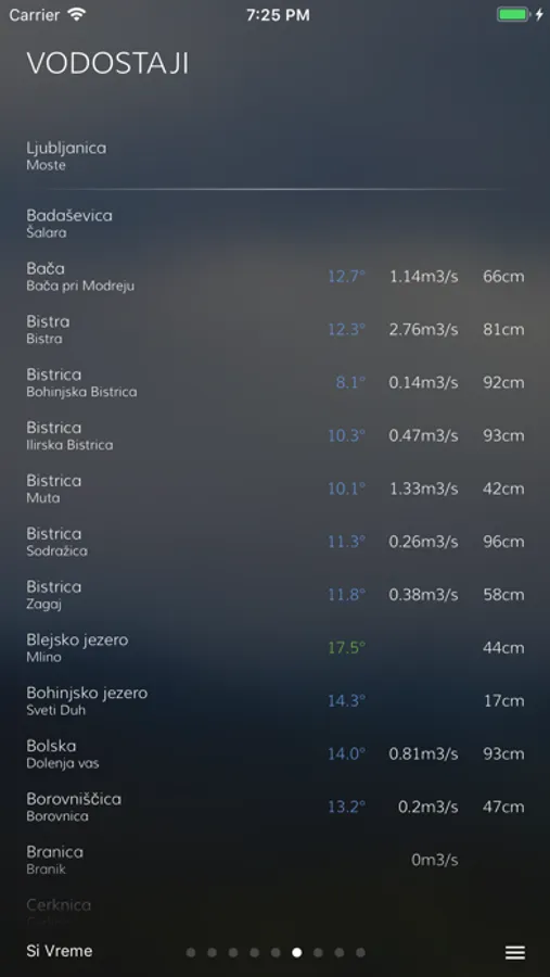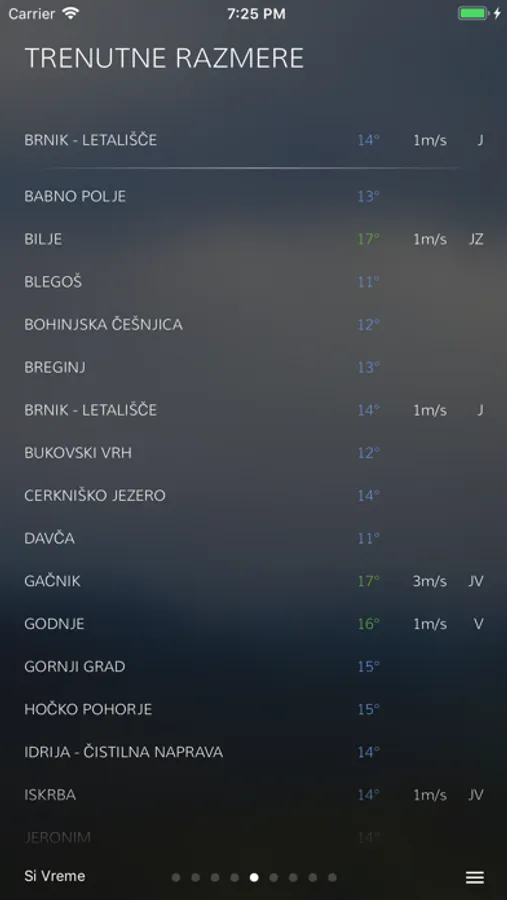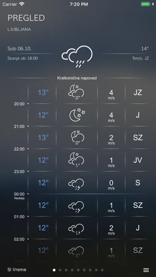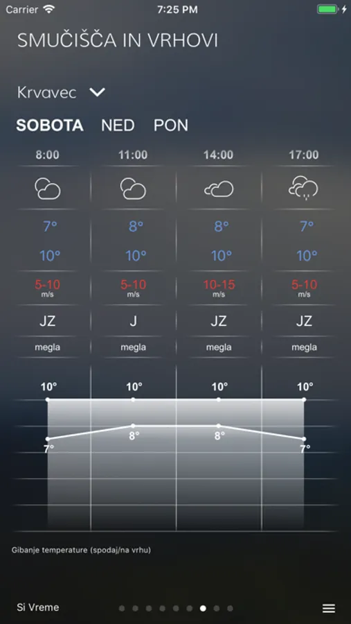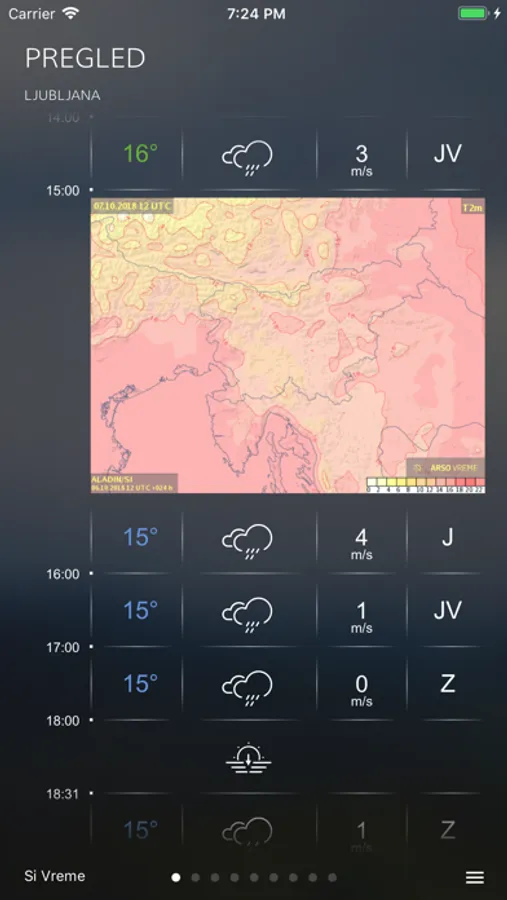 - vreme je prikazano za posamezne dele dneva (ob 7:00, 10:00, 13:00 in 16:00)