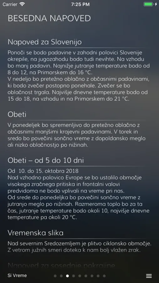 - napoved za Slovenijo za tekoči ali naslednji dan