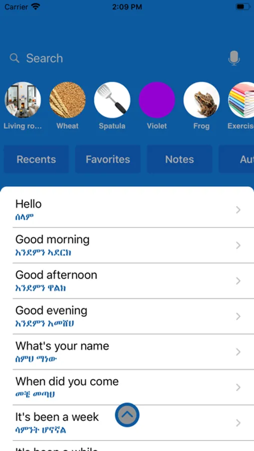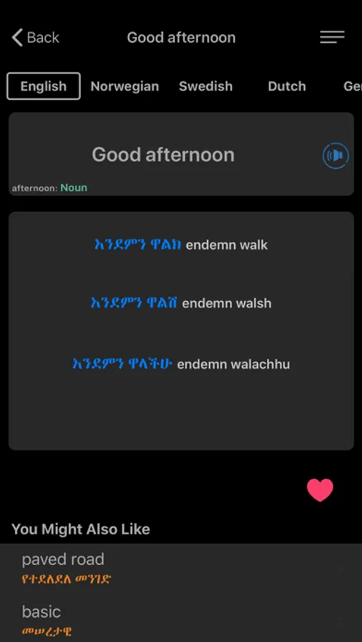 - Search in English and Amharic.