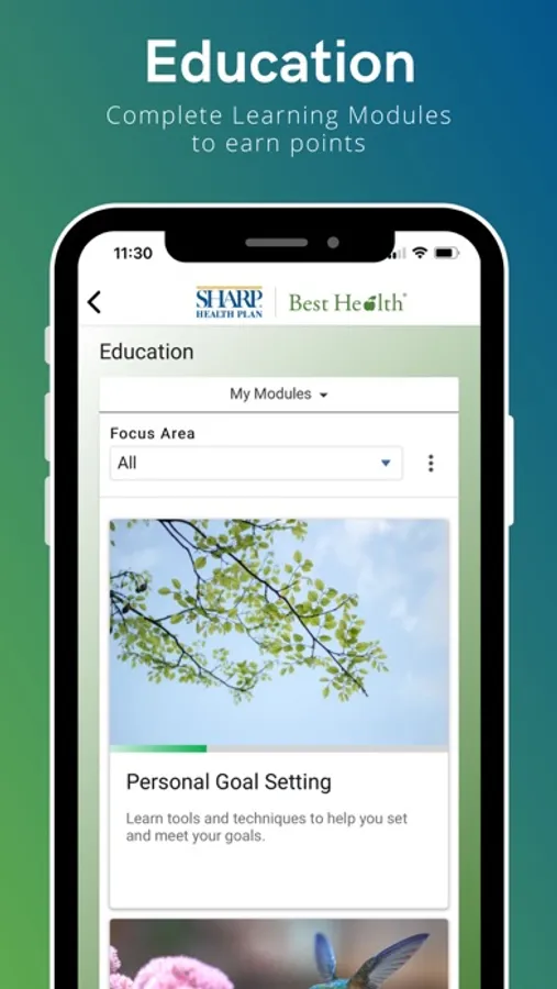 • Engage in a variety of Learning Modules to increase your health IQ and build skills in healthy eating, sleep, emotional well-being, exercise and more