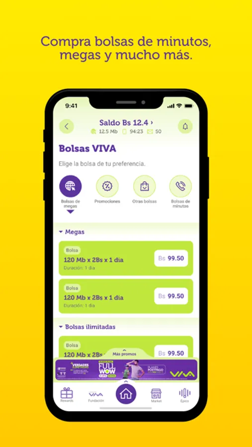Puedes comprar bolsas diarias, bolsas ilimitadas o bolsas de whatsapp con un solo toque y llevar el control de tus saldos de megas, minutos y crédito. ¿No sabes en que gastaste tus megas? ¡En Viva app también puedes revisar el detalle del uso de tus datos!