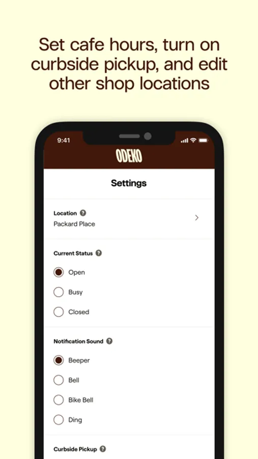 Easily manage your business from the settings page, with the option to offer curbside pick up or in-house delivery with the single click of a button!
