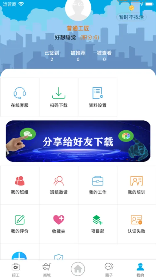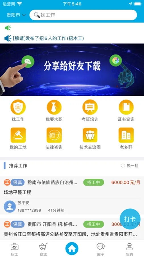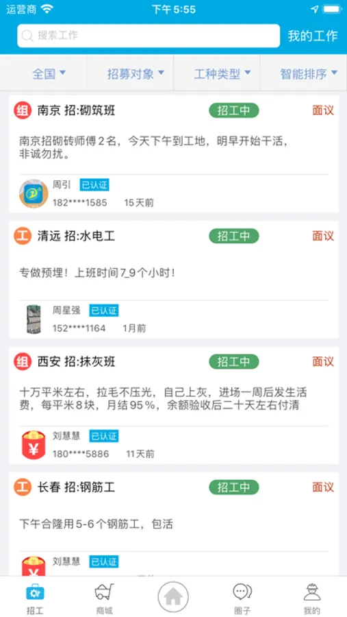 这里有几十万优质持证工匠级工人,包括建筑工人、特种作业工、技能工、农民工,涵盖塔吊司机、升降电梯司机、电工、焊工、钢筋工、混凝土工、泥工、装修工人等上百工种。这里有10万余个保真工作岗位,涵盖建筑工程、家装工程、工厂直招等保真工作岗位。如果您是找工作,秀出您最擅长的技能,我们为您推出最适合的工作;如果您是想找工人,发出您的要求来,这里能找到您最想要的工匠级工人。另外,这里为您提供了技能工、特种工培训考证资源,还有大量免费的资源供您交流学习。
