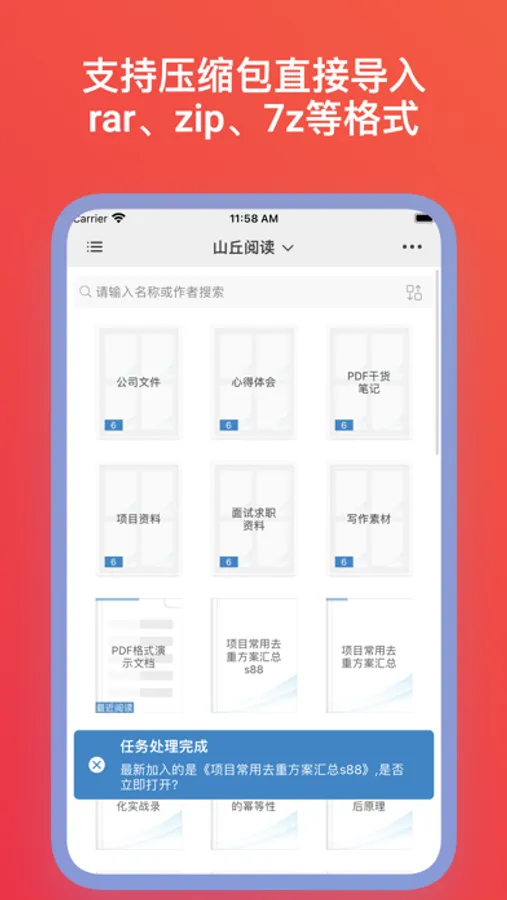 不限制文档数量,免费版也能完美地收纳整理。支持文件夹内再建文件夹。支持快速搜索文件。支持批量重命名文件。