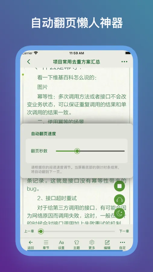 3、有一点点养眼的阅读界面,功能设计也很人性化,比如自动记录阅读位置、简体繁体的转换、间距的自定义、夜间模式很护眼