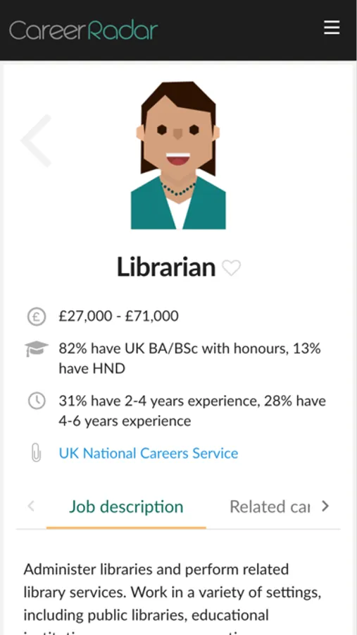 Each job details salary ranges, daily and weekly tasks as well as links to further information. You will be surprised by the range of jobs, many of which you might never have heard of or considered. If you are not sure which career path to follow then Career Radar will provide options.