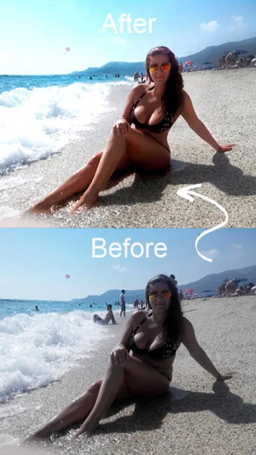 Key features of photo processing: breast augmentation, waist slimming, tummy reduction, cellulite treatment, pimple eraser, wrinkle remover, butt editor, breast augmentation, legs slimming, big and beautiful breasts.