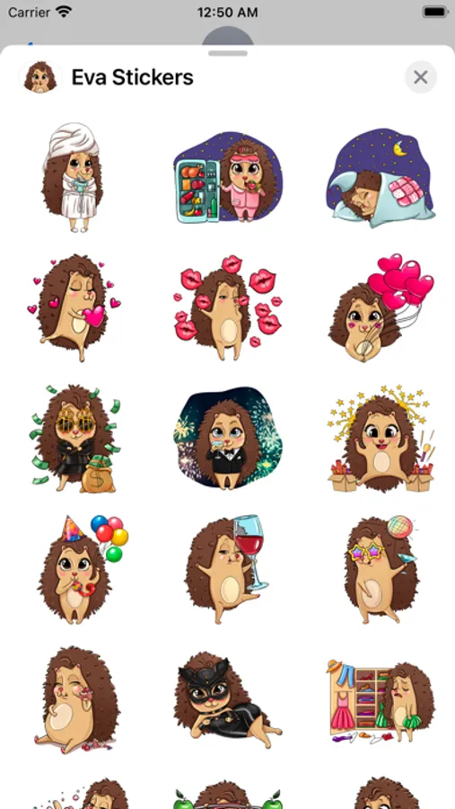 Eva is a mischievous hedgehog, fond of parties and holidays. She’ll eagerly congratulate your friends and relatives on the beginning of weekend or she can wish them Happy Birthday.
