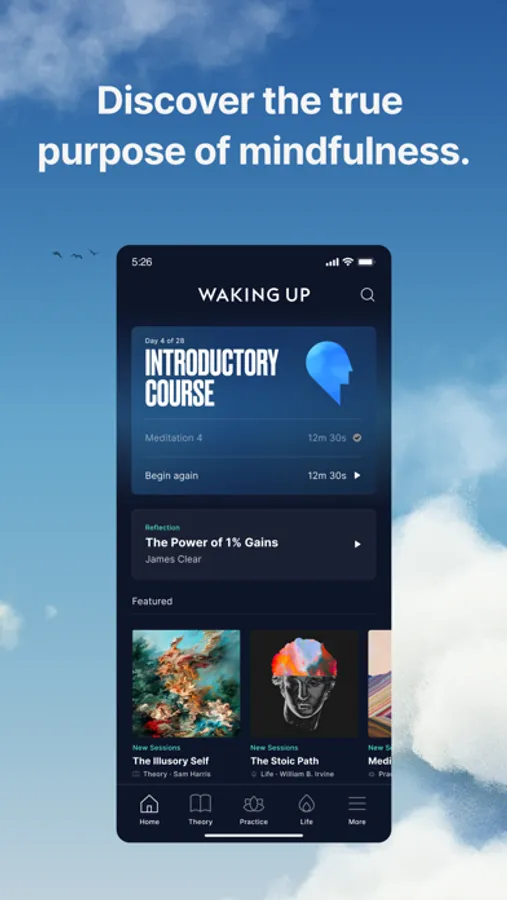 Waking Up supports your growth and development in a number of different ways. You’ll find an abundance of useful features, like meditation timers, in-app support messages, an ever-growing audio library, and daily reminders to help bring your mindfulness practice into your life—plus, Waking Up allows you to save all of your meditation sessions to your Apple Health app.