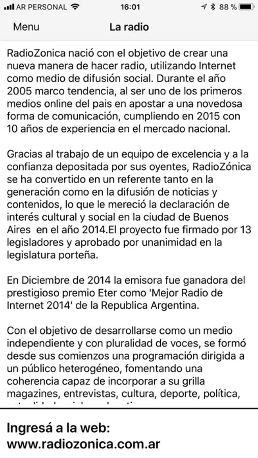 En Diciembre de 2014 la emisora fue ganadora del prestigioso premio Eter como "Mejor Radio de Internet 2014" de la Republica Argentina.