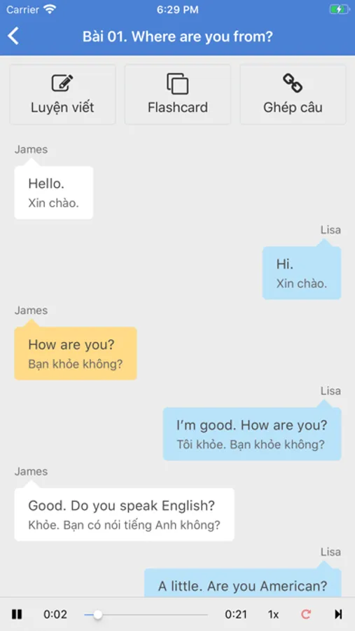 - Luyện nghe căn bản, học tiếng Anh từ các đoạn hội thoại cơ bản đến nâng cao, có phát âm và bản dịch đầy đủ.