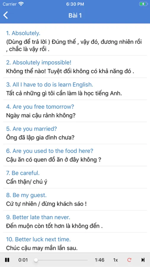 Học tiếng Anh cơ bản là ứng dụng tự học tiếng anh tốt nhất trên ios. Học tiếng Anh cơ bản có đầy đủ những đoạn hội thoại từ cơ bản đến nâng cao, có phát âm, có bản dịch đầy đủ. Học tiếng Anh cơ bản có thể sử dụng mà không cần kết nối mạng.
