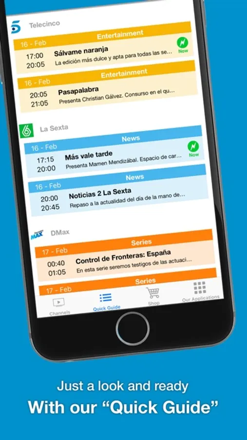 Add TV shows, movies, series, sport events and all you want to your watchlist and we'll shoot you a reminder when they're about to air.