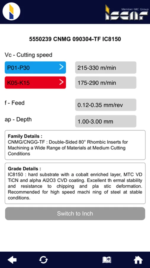 CUTTING INFO provides machining data for all of ISCAR's cutting tool geometries.