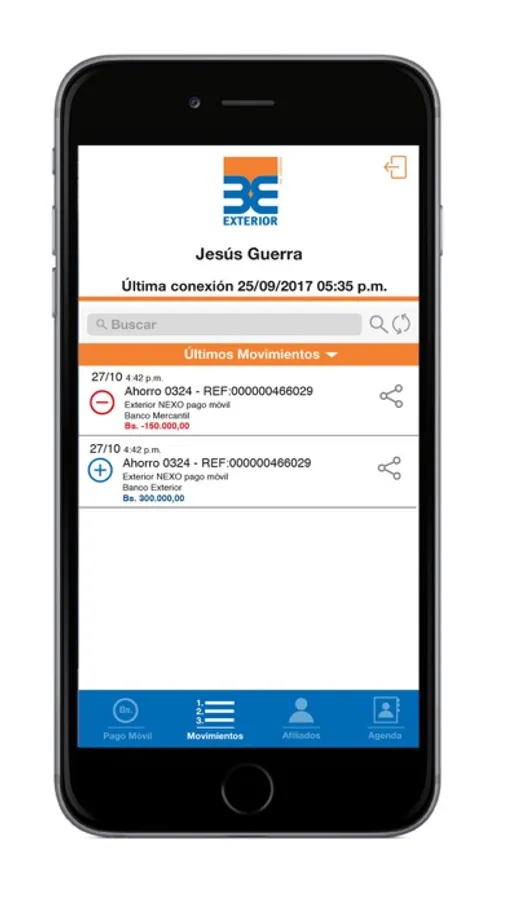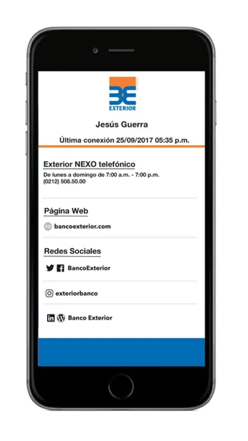 El servicio Exterior NEXO pago móvil, es un sistema en el que las personas naturales podrán enviar y recibir pagos en línea al instante entre clientes EXTERIOR y de otros, mediante instrucciones realizadas desde su teléfono móvil utilizando únicamente el número de teléfono celular asociado al usuario como el medio para movilizar los fondos. Entre las principales caracteristicas y beneficios se encuentran: