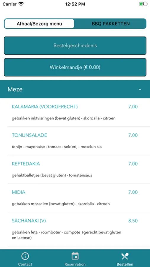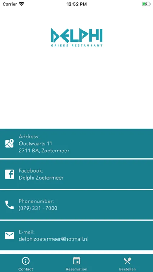 Tevens kunt u met de app een overzicht inzien van de contactgegevens van het restaurant.