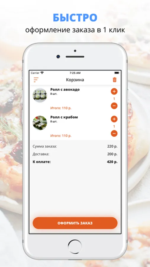 Скачивайте наше приложение, оформляйте заказ и наслаждайтесь любимой едой, где бы Вы ни были! Приятного аппетита!