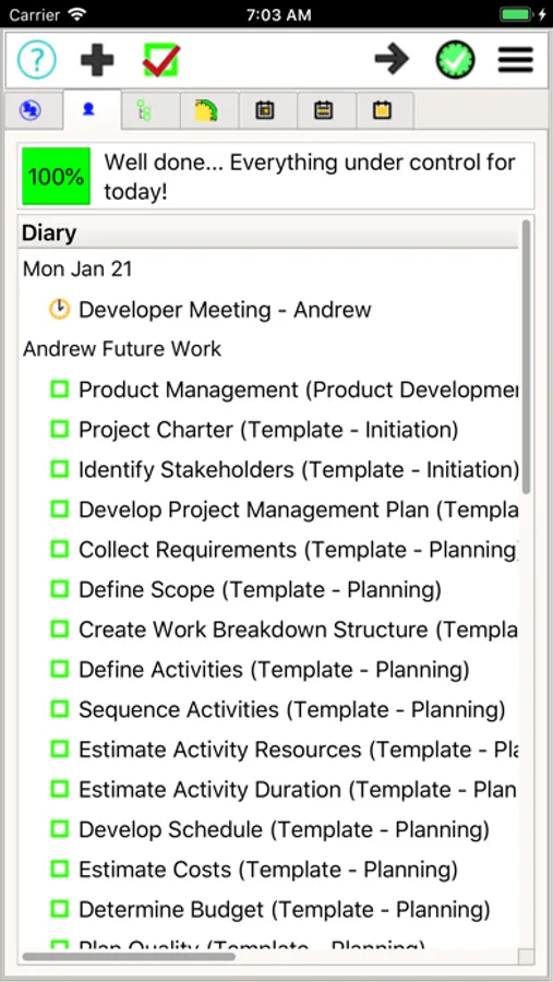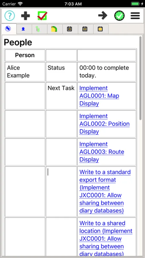 As well as being a project planning tool, JXCirrus Project works just as well as a multi-person diary. Diary features include journal entries, appointments and addressbooks.