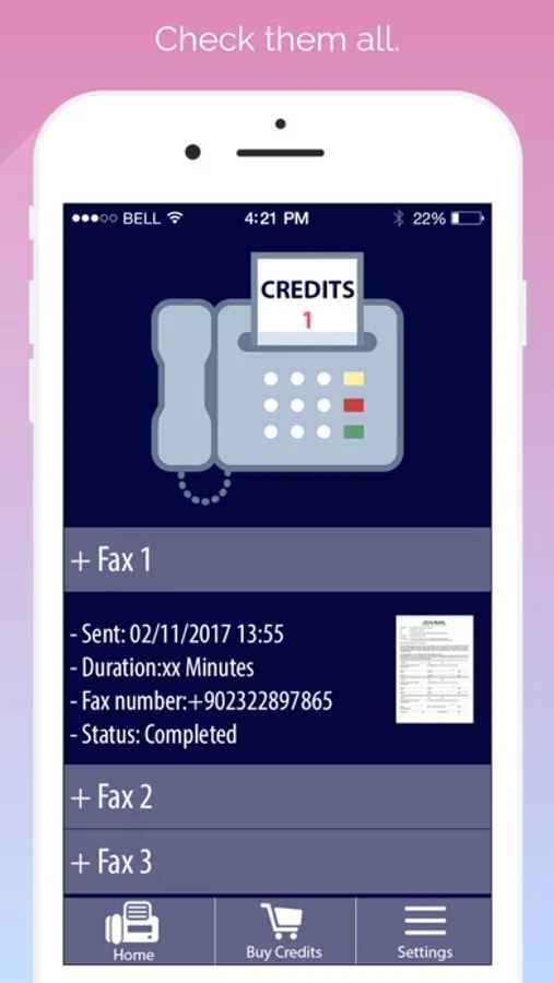 You can fax your documents anytime.Just take a photo of your document with your phone.Or select a photo from your gallery.And then enter the fax number of receiver.That's all.