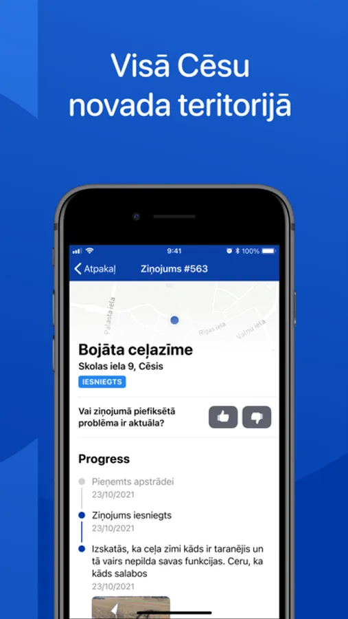 Lietotne "Cēsu novads" nodrošina operatīvu apvienotā Cēsu novada pašvaldības un iedzīvotāju sadarbību vides sakārtošanā un uzlabošanā. Ziņo par problēmām, ko redzi; mēs informēsim Tevi par paveikto!