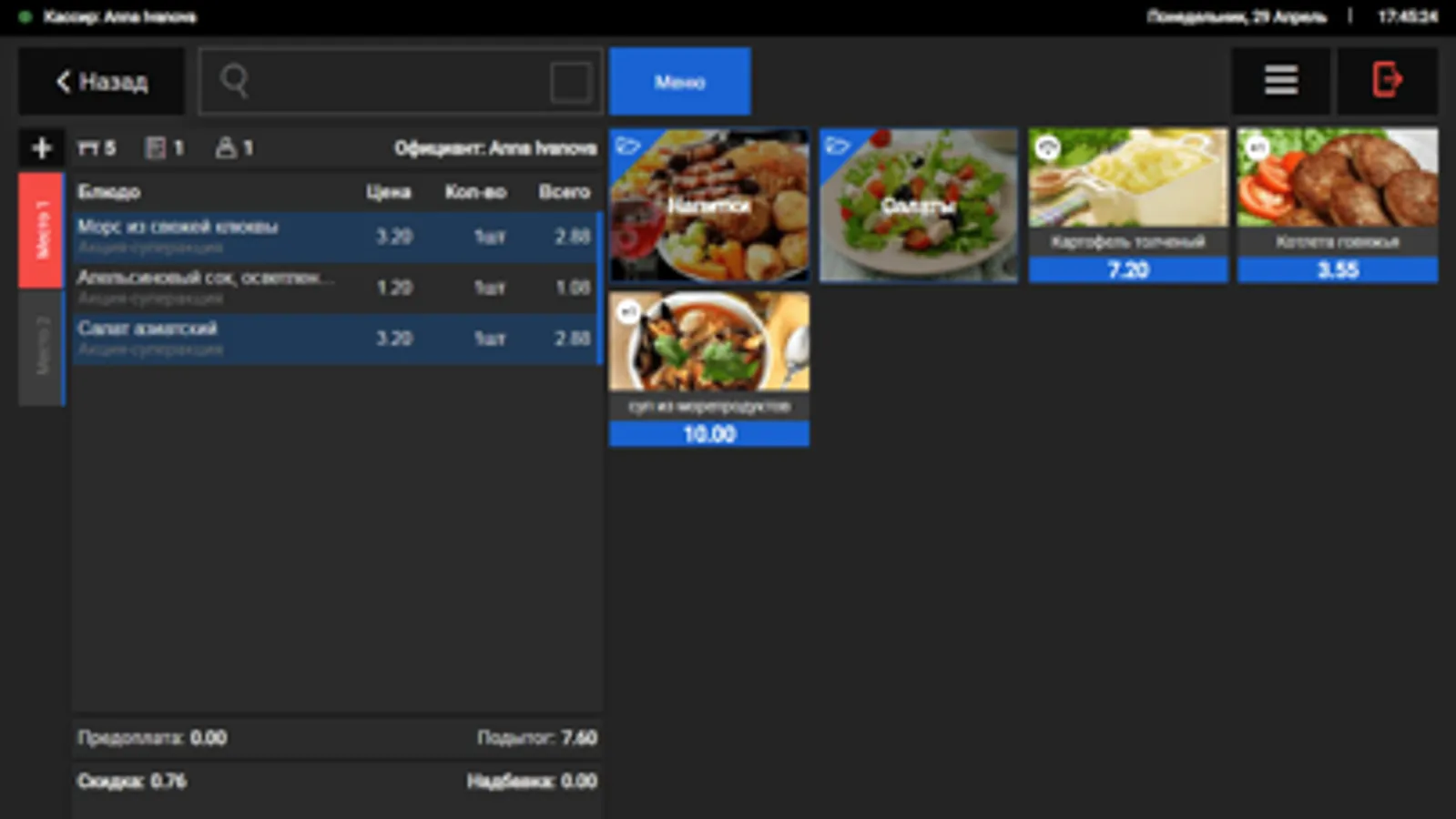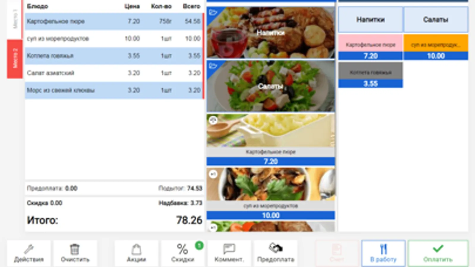 Caffesta - это облачная универсальная система автоматизации для заведений общепита и торговли. Программа автоматизирует каждый этап, от принятия заказа клиента с помощью меню на планшете до инвентаризации склада и калькуляции блюд и заготовок. Мы поддерживаем полную работу общепита. Для торговли - интеграция с весами, сканером штрих-кода и дисплей покупателя.