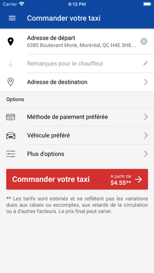Vous pouvez maintenant facilement obtenir une estimation rapide de votre voyage en remplissant simplement votre lieu de départ et destination.