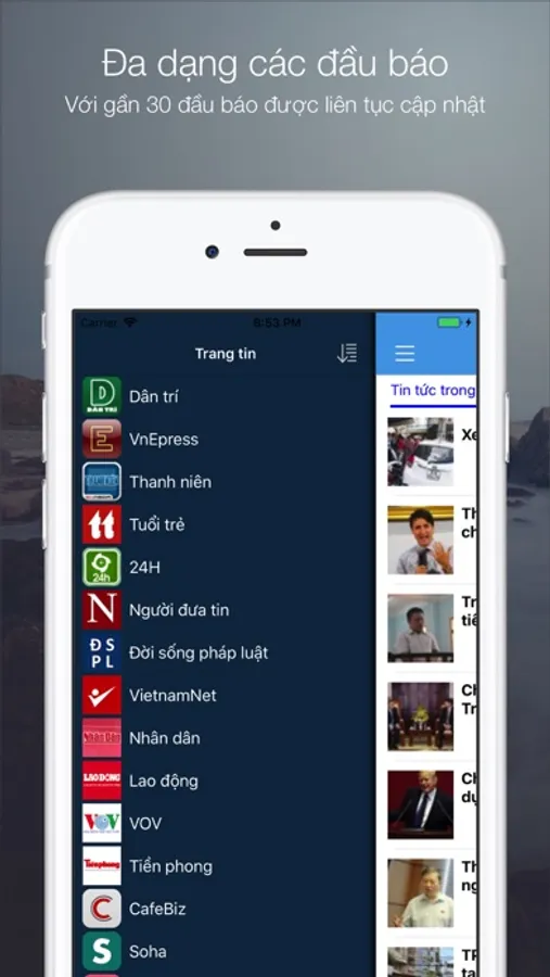 Ứng dụng đọc báo tuyệt vời với gần 30 nguồn báo liên tục được cập nhật. Giao diện đơn giản, thân thiện, dễ sử dụng. Bao gồm các trang tin sau: