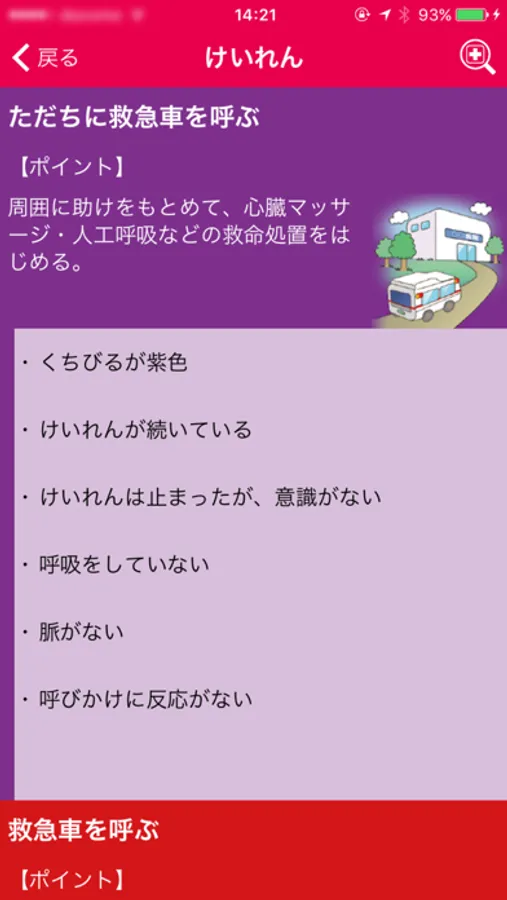 倒れている人を発見した際に必要な一次救命処置の流れや、近隣のAED情報の検索、表示が出来ます。また、子どもの急病への対処に迷った時の救急受診のガイドを提供します。