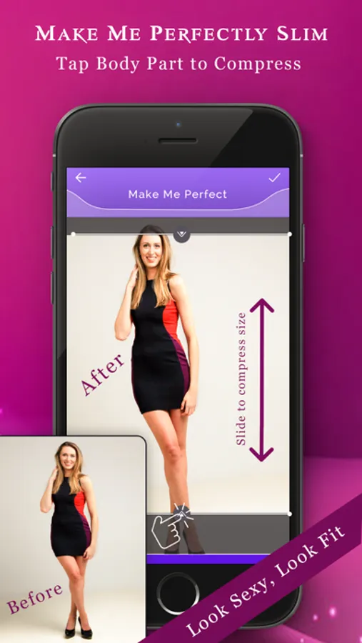 - Photo Slimmer makes you slim and taller with your finger touch.