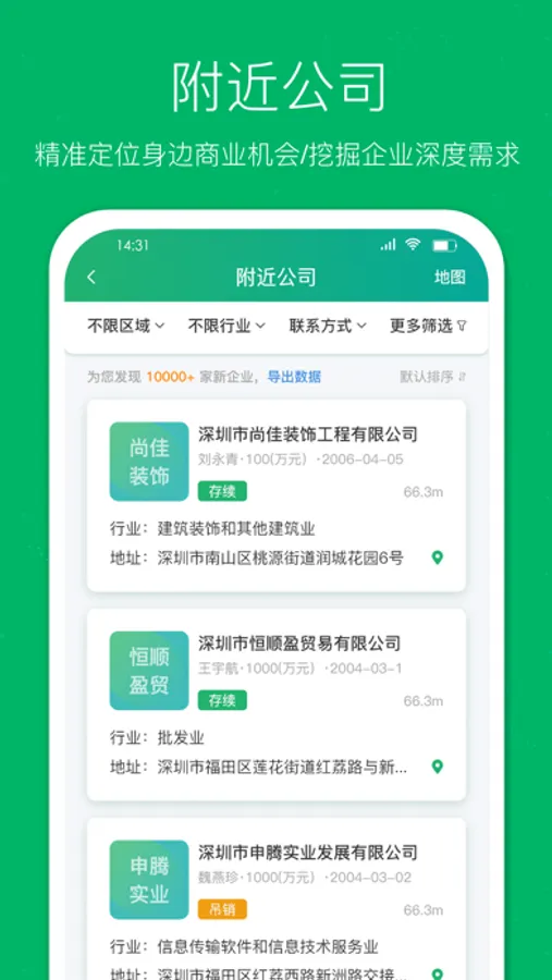 客户开发:快速检索目标企业信息及联系电话,了解企业的同时把握每一个商机。