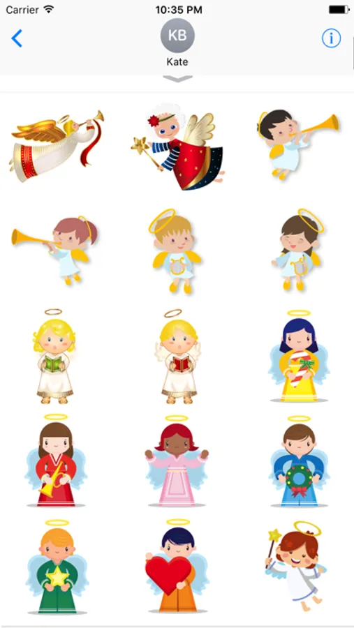 Choose from a vast collection of cute little angels in action and send the one that suits you. Instead of sending lame greetings through text messages now you can add cute angels in your conversations. Add fun and excitement in your daily conversations with your family members and friends.