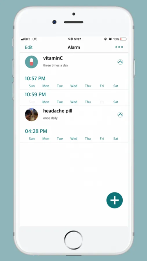 You can receive notifications at any time by specifying pictures, names, dosage, times, days.