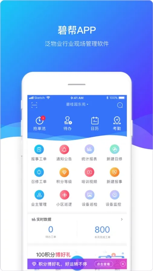 “碧邦”是智慧社区物业信息化协同移动平台,提供各类功能(客户管理、报修、工程、巡检、维保、品质检查、综合巡逻、社区公告等)以求全覆盖物业各类社区管理业务。作为物业各类人员的统一云平台,用户能通过移动端实时参与各类业务流程高效协同办公,有助提升物业服务效率,提升业主满意度。