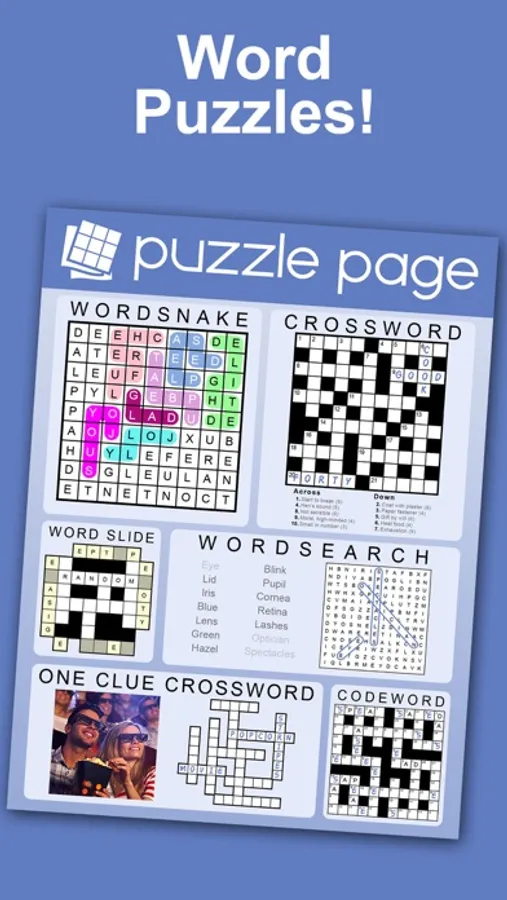 Puzzle Page includes over 20 varieties of puzzle including classics like Crossword, Sudoku, Nonogram, Wordsearch and Codeword with new puzzle types added regularly.
