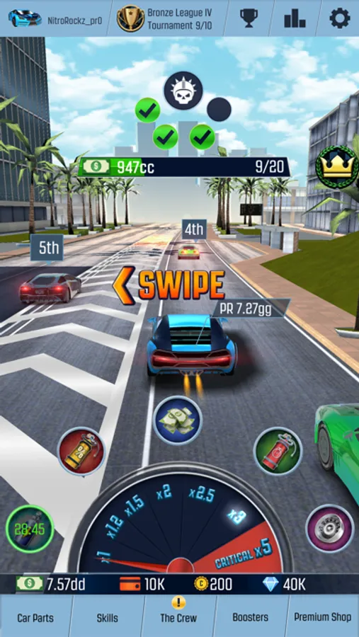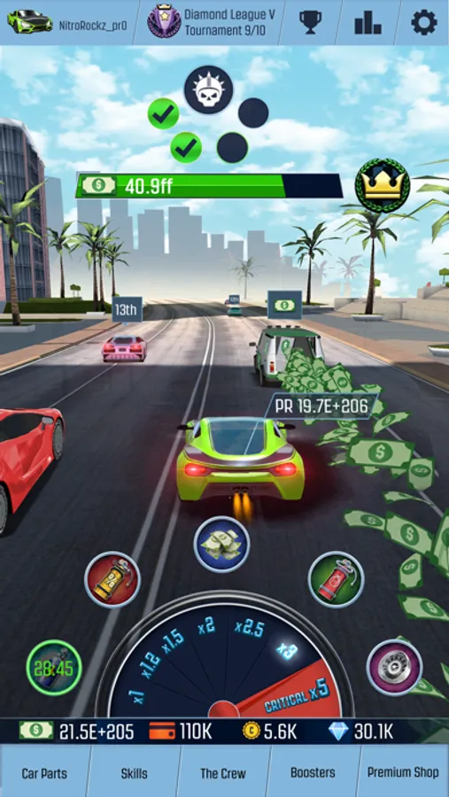 Unlock 25 basic boosters for your favorite car! All of them have over 1000 levels of upgrades! Sounds promising? Yeaaah! Use them wisely in the city road and highway and show who's the boss of illegal street racing! Already felt the full power of Idle Racing GO? Ha! We've barely warmed up! Get even more advantages in the traffic making use of special cards!