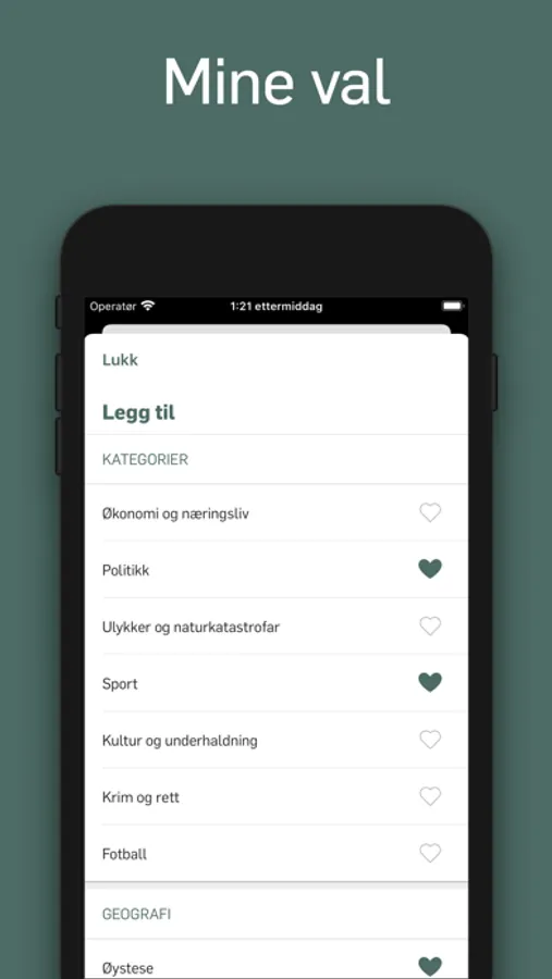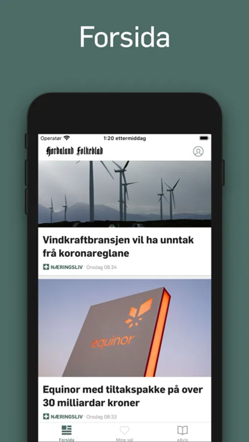 I den nye appen vår kan du vera din eigen nyheitssjef. Vel sjølv kva kategoriar, emne og stader du ønskjer nyheiter frå og vil bli varsla om. Du kan òg følgja din favorittjournalist. Hald deg oppdatert om det du sjølv synest er viktig i våre artiklar, bilete og videoar.